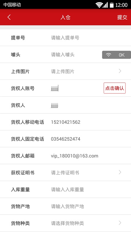 在软件中录入货物的相关信息,如名称、数量、规格等。