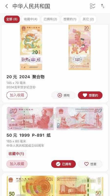 纸币收藏管家是一款集纸币搜索和管理功能于一体的应用。它收集近三百个国家和地区的十万余枚纸币详细资料,涵盖面值、发行年份、编码、材质、大小、印刷厂、主题等信息,还配有正、反面详细说明,绝大多数纸币有官方图片或实物照片。同时提供专业分类,方便用户查询和鉴赏。此外,具备收藏管理功能,在查询检索时可标识“已拥有”和“我想要”的纸币,能分层次建立目录管理藏品,上传纸币照片,记录收藏时间和成本价格。未来还将提供纸币详细发行信息和市场行情,打造藏品管理及交流交易平台。