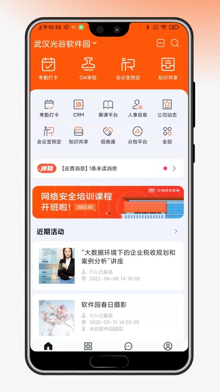 “OVU园区通”是中电光谷为园区打造一站式智慧办公、产业资源共享服务平台。它可以为园区提供入驻前、入驻后、退出期全生命周期服务功能: