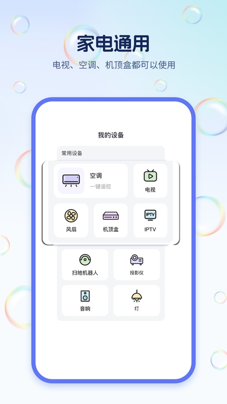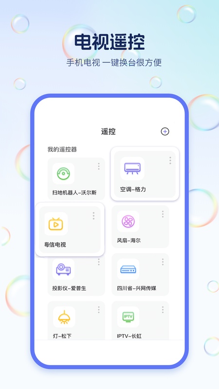 随身遥控器,让手机直接成为遥控器。支持多设备控制,满足用户不同的家电控制需求。设备添加和命名功能方便用户个性化管理设备。智能匹配功能实现一键连接与人性化控制,操作简单便捷。