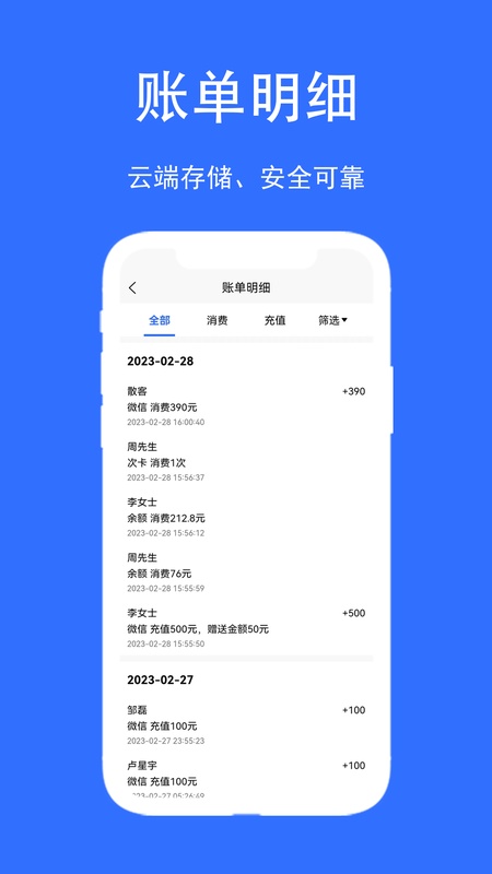 店帮帮助手具备丰富的管理功能,涵盖店铺管理、会员管理、会员消费/充值、营收统计、资产统计、会员账单明细、积分折扣、电子会员卡、商品管理、员工管理、门店预约等。全面覆盖了商家从日常运营到会员维护的各个方面,能够满足商家多样化的管理需求。