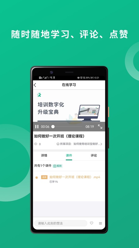 2、一站式开启移动学习平台—— 企业无需部署安装,按需开通账号,上传视频、PDF、Word、PPT等资料即可开展在学习,“企业学习+互联网”就是这么简单!