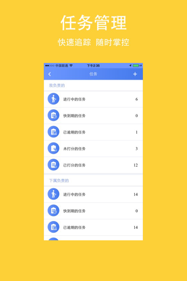 设有任务管理功能,可快速追踪工作进展,并能对工作成果评价打分,有效提升企业执行力。