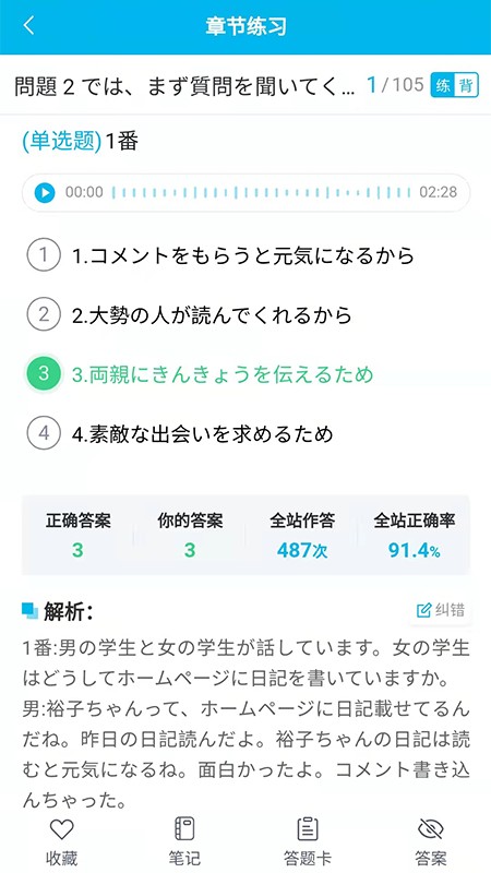 1.支持在题目下发言讨论2.根据大数据组成N1N2易错题题库:N1 208题;N1 203题