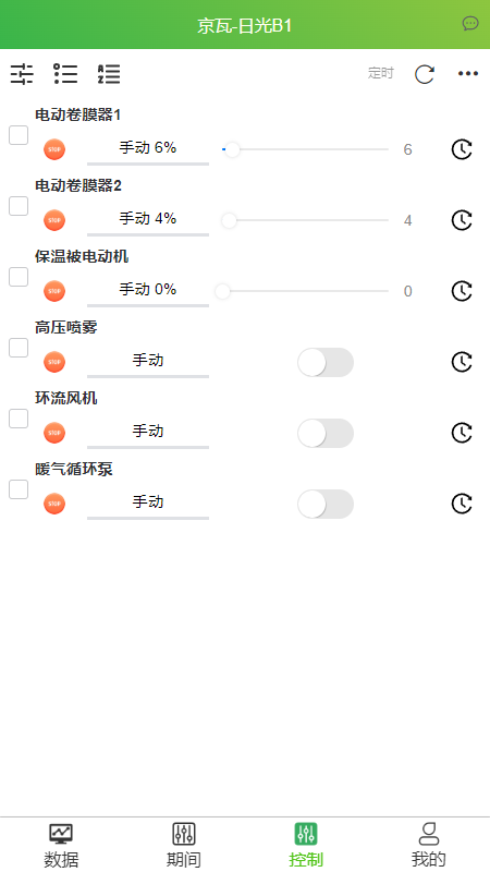 通过远程控制使技术人员在办公室就能对多个大棚的环境进行监测控制。监测结果可以为温室精准调控提供科学依据,达到调节作物生长周期,改善作物品质,提高作物产量的目的。设施种植-温室环控系统能够为您的温室气候管理提供高质量、全方位的解决方案。从而实现集约、高产、高效、优质、生态和安全的的目标。 软件功能