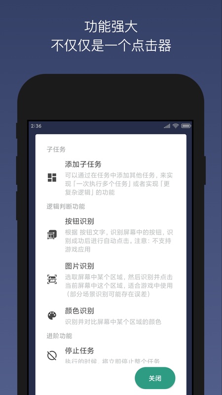 - 逻辑判断功能:按钮识别、图片识别、颜色识别