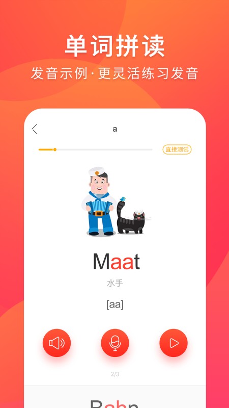 - 闯关式学习:趣味德语学习模式,更适合德语初学者使用,拆解德语字母和元辅音,细致讲解德语入门基础,系统化学德语知识。
