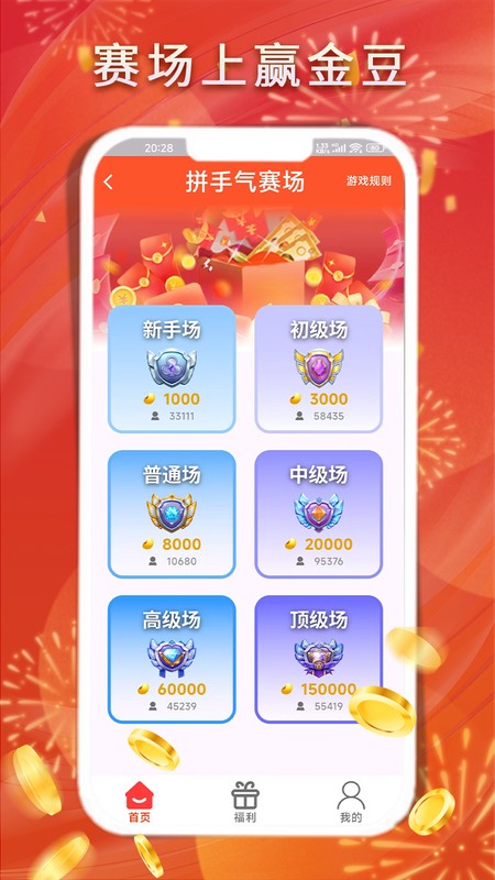 -PK赛模式专区 缴纳金豆报名参赛 累计手气最佳者获得奖励金豆。
