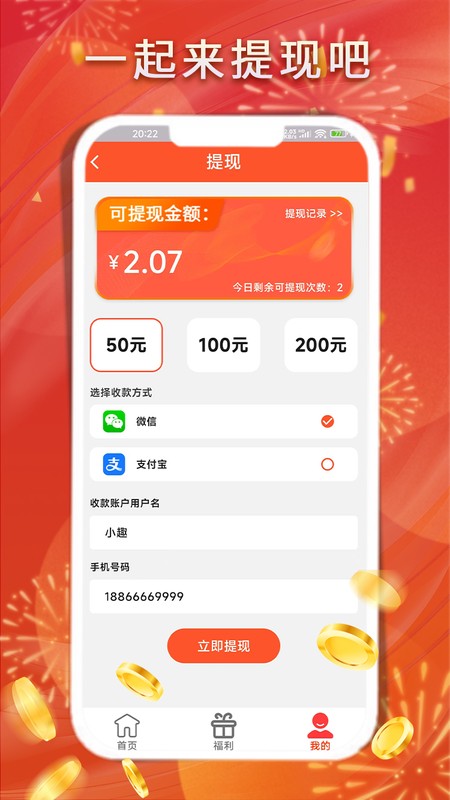 金豆可兑换提现,使软件的娱乐性与实际收益挂钩。