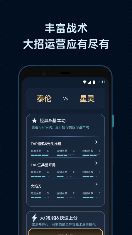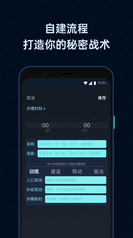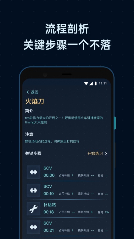 SCBox能够在星际争霸对战游戏中,在游戏开始后的正确时间点语音提醒关键动作,帮助玩家练习流程,解决萌新在流程练习中忘记关键步骤和下一步动作的问题。同时,该应用内置极为丰富的战术流程,有讲究基本功的,也有大招狗招快乐上分的,可供玩家自由选择。此外,还可以用SCBox制作菜谱厨房烹饪步骤流程,提示什么时候该加某些调料。