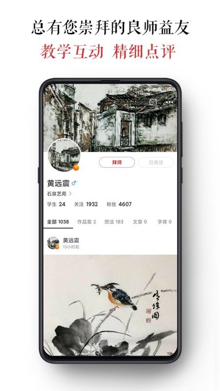 用户可在此平台欣赏名师作品,参与作品拍卖,与名师及其他爱好者交流,还可拜师学艺。