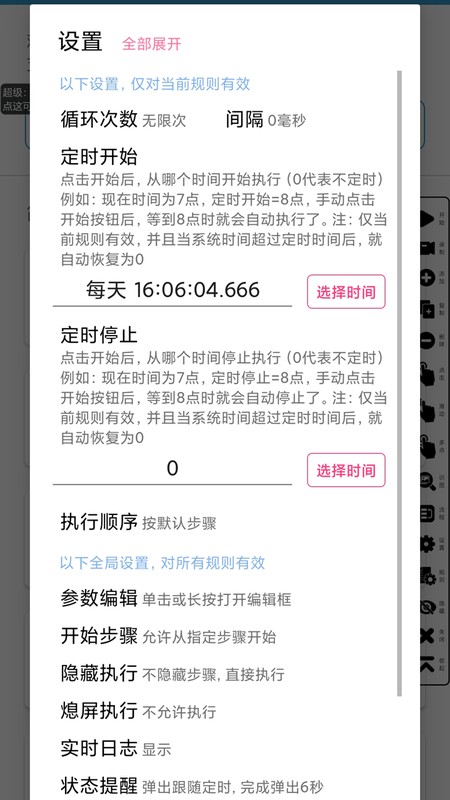定时停止:在指定的时间自动停止执行
