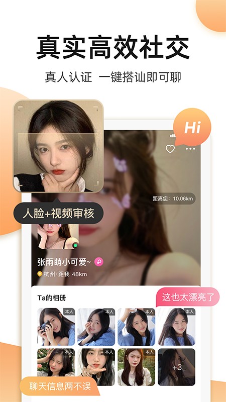 真实可靠:采用真人认证、实名认证,确保信息真实可靠,方便聊天交友,告别“尬聊”,轻松认识陌生人。