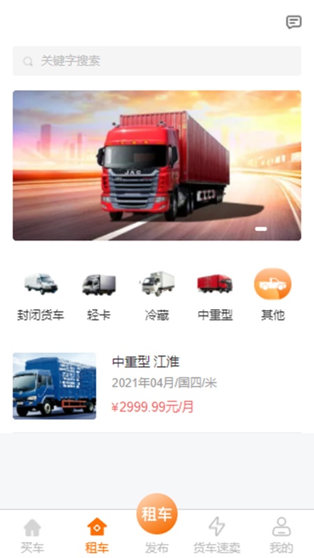 京城货车 APP 支持在手机上发布货车信息以及查询货车信息。用户能将自己的货车信息发布出去,以此寻找合适的买家;也可以在该平台寻找自己满意的货车信息,进而购买货车。