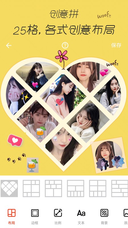 1、高达25张的照片拼图:海量拼图模板、滤镜、贴纸、涂鸦、酷炫文字,拼出您的精彩