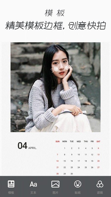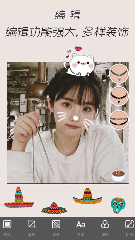 2、照片装饰:边框、背景、贴纸、文本、马赛克、镜像、涂鸦等