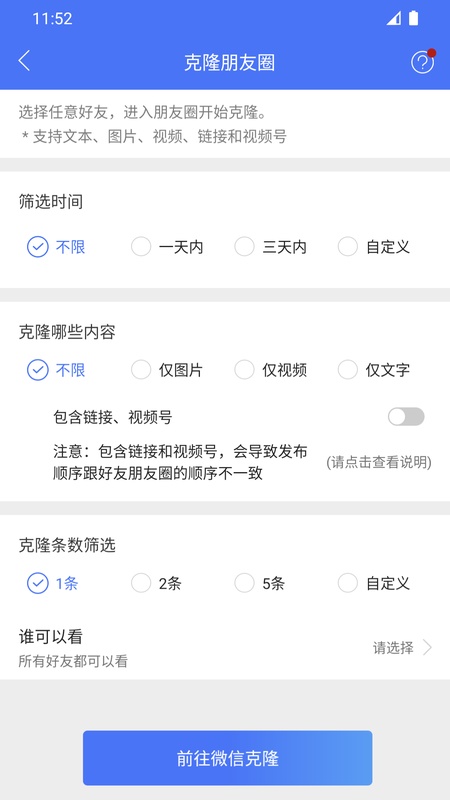 3、【朋友圈克隆、点赞评论和转发】多种方式经营你的朋友圈,让更多的人了解您;