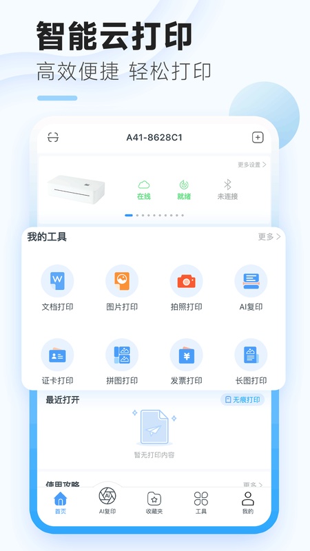支持云打印和蓝牙打印,满足不同场景的打印需求。