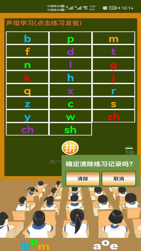 在学习过程中,通过形象图认识拼音。还能针对声母、韵母、整体认读等不同分类开展学习。