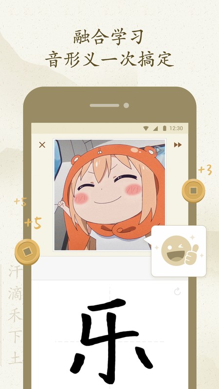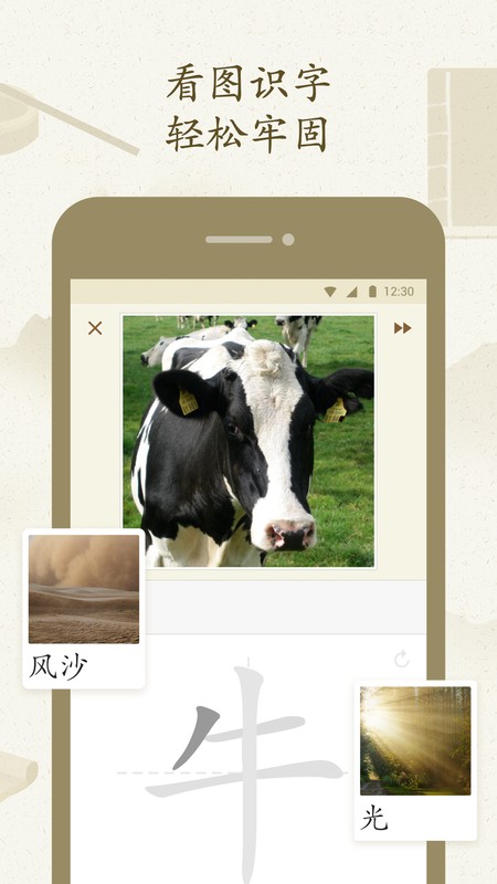 学习汉字的过程没有游戏,通过合理的学习复习安排,训练孩子快速掌握汉字,避免孩子在游戏上耽误时间,适合对学习本身感兴趣且有一定自制力的孩子。采用图片结合写字的方式,能让孩子音形义一次搞定汉字的书写和理解。