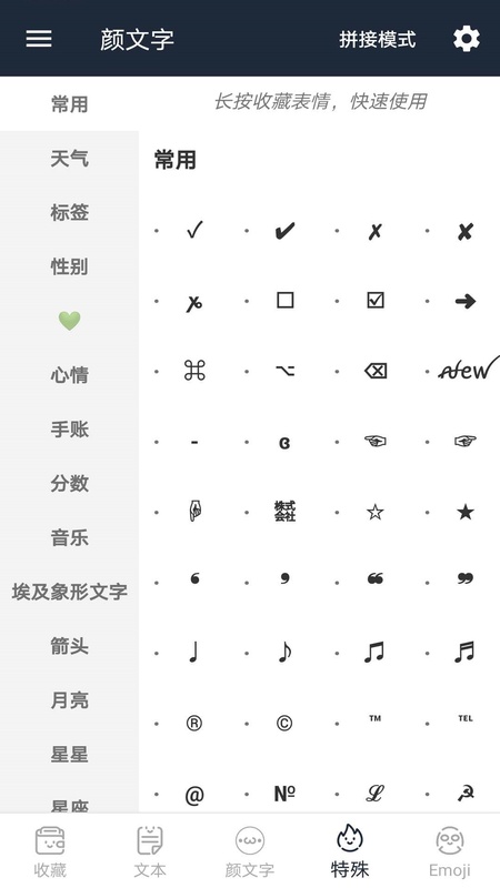 颜文字 是一款可以输入花样文字、各类颜文字Emoji、特殊字符的手机app。