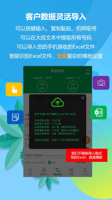 3、智能导入:智能识别名单数据,动态生成客户属性。
