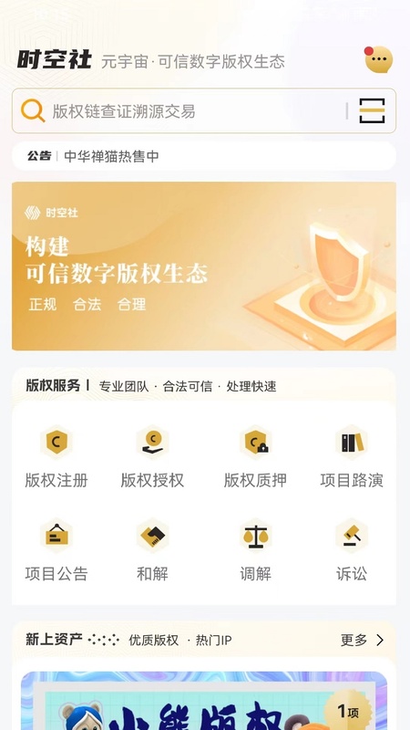 时空社是一款面向手机用户的版权服务应用,提供丰富多样的版权相关服务。在版权资源管理方面,为著作权人、权利人提供资源管理服务,用户可在个人空间、家庭空间、单位空间、社群空间,以照片、视频、音乐、文档、语言等形式管理自身资源。版权注册提供多种作品类型的确权服务,由权威机构对原创作品和转让取得作品进行信息审核与权利确认,并颁发数字版权资产证书。版权授权为著作权人、权利人提供授权管理服务,方便在线版权授权,规范授权形式,授权后签发授权证书并在版权链存证。版权公示则让权利人能发布权属公示、授权公示、侵权公示以及和解/调解/诉讼/判决等公示。此外,还具备版权存证、版权转让、版权维权、主题活动、社群管理等服务。