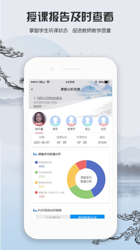 解决了“依据什么”听评课的问题,方便教育学者深入课堂教学深处,研究教师教学、课程性质、课堂文化。着眼于日常课堂教学研究,让课堂教学研究成为常态化专业活动,有助于教育研究院、教育局、学校构建教师课堂教学评价体系,是实现听课评课范式转型的重要工具、发展教师专业的有效手段,也是区域精准教研的得力助手。可配合专家团队提供更专业、更有深度的质量提升服务。