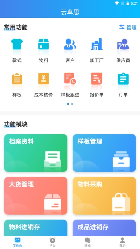 云卓思“服装外贸ERP系统”,一款多语言服装跨境贸易管理软件,服装生产样板资料管理跟进、生产计划排期、物料计算与采购、服装生产跟单管理。样板、报价、订单预计、订单实际成本自动抓取业务数据,秒算真实成本。订单多目的地、多币种、多货期、多价格的灵活处理,适应服装外贸的订单多样性,智能提醒、消息推送使工作没遗漏。 应用功能