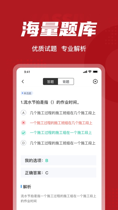 建筑八大员考试聚题库APP是一个针对建筑八大员考试的题库,涵盖了该考试热点、难点和常考点的考试模拟题库,八大员考试包含材料员、施工员、材料员、标准员、质量员、安全员、机械员、劳务员的所有知识点和课程的历年真题集模拟试题题型,题库中的试题全真模拟真实的考试,是各位考生学习乃至通过考试的好帮手。