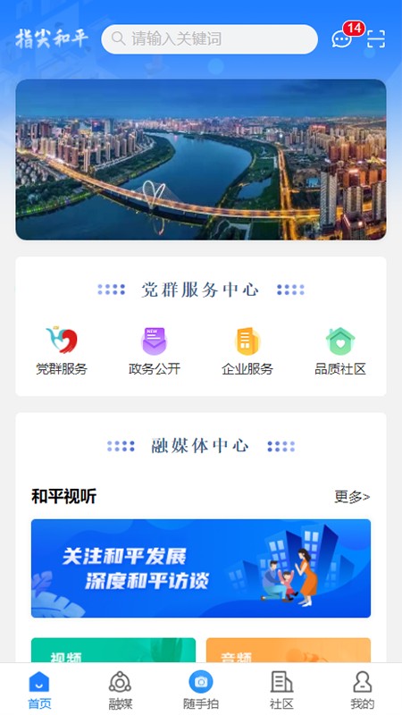 “指尖和平”App是沈阳市和平区数字化应用全媒体平台,是和平区一站式综合智慧平台 。通过移动互联网技术为区域内企事业单位和民众提供统一入口, 实现信息治理体系和信息治理能力现代化。 软件功能