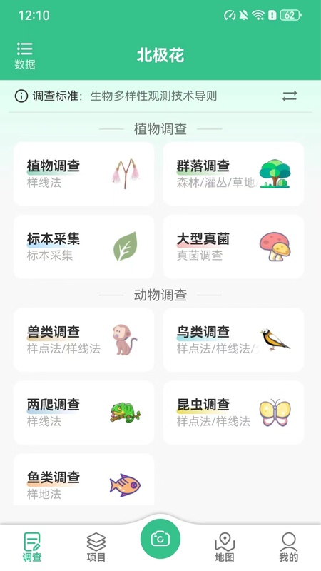 北极花APP是一款生物多样性快速调查软件,具备诸多实用功能。在野外调查方面,它支持拍照识物,让物种认识少的人也能参与调查;提供语音记录功能,方便不愿写或不会写的用户;还有表格录入功能,以熟悉的界面提高记录速度。调查形式丰富多样,有植物、动物、大型真菌、标本采集等调查类型,包含样方调查、样线调查、样点调查、植被调查等专业调查,还能随时随地快速记录物种名称、分布等重要信息。在数据统计分析上,可进行物种名录导出、重要值计算、多样性指数计算、区系分析以及科属种统计。