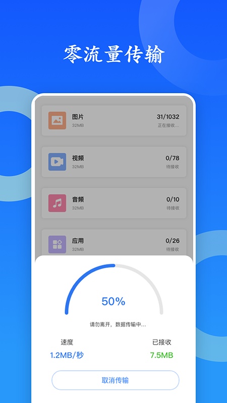 闪传,快捷的手机换机和文件传输工具,几秒即可传输成功!