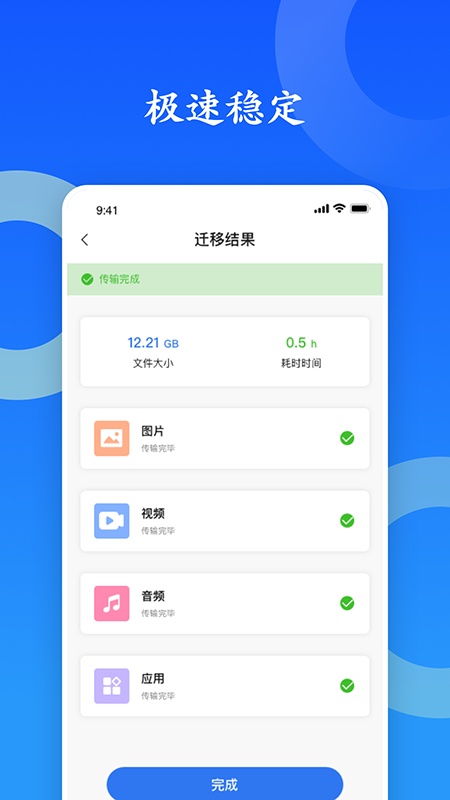 作为快捷的手机换机和文件传输工具,具备快速传输能力,文件传输几秒即可成功。