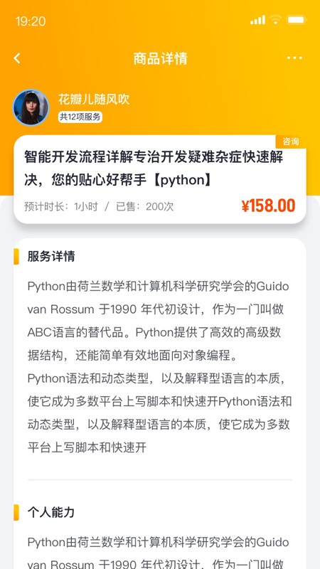 在这里,每个人都可以把自己的能力长处变成商品,对外展示并出售。比如:流利的英语口语、丰富的职场经验、美妆穿搭达人、善于处理人际关系、擅长养花插花、会做专业的简历、拥有某一项技术、会制定专业的营养餐计划、动听催眠的睡前故事……等等等等。你的一切个人专长,都可以随时发布并找到用武之地。