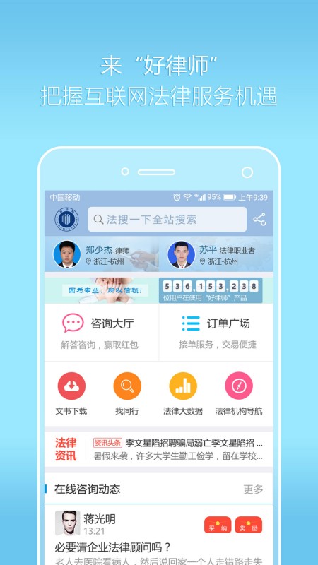 - 用户可在平台公开提问,多名知名律师快速答复。