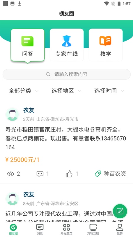 消息功能可让用户在线咨询种植专家,及时解决种植难题。