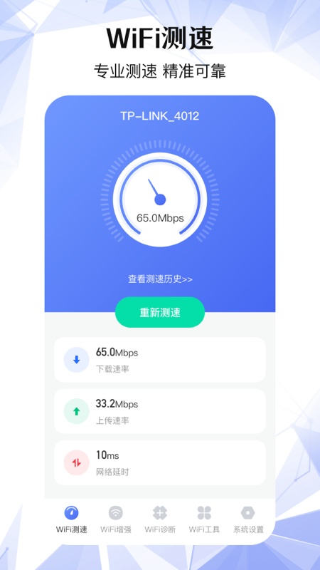 2、查看历史:方便查看您的测速历史,比较每次测试结果;