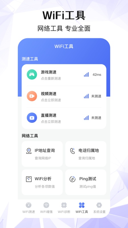 【wifi诊断】支持各大运营商测速;支持Wi-Fi测速、2G/3G/4G/5G的网络检测