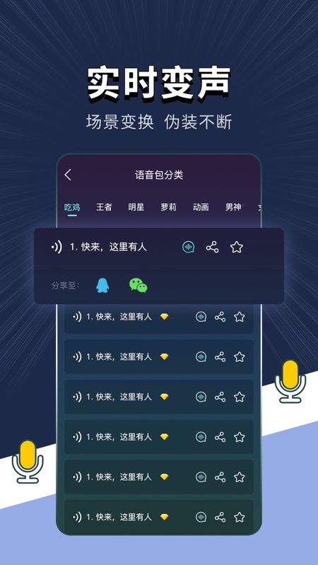 变声软件是一款集语音变声和文字变声为一体的变声器,包含系统预定义的萝莉、惊悚、搞怪、空灵、合唱、颤音等声音效果,还支持用户自定义修音,并可以通过qq、微信等方式将变声后的音频分享