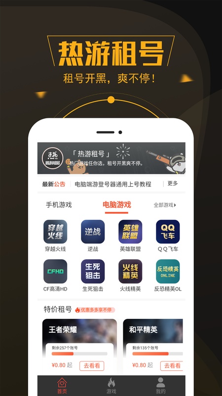 热游租号致力于让游戏热爱者体验感受高级虚拟物品带来的快乐,为广大玩家提供优质的手机游戏、电脑游戏、steam等游戏的租号借号服务,热门游戏任你选,租号开黑爽不停!