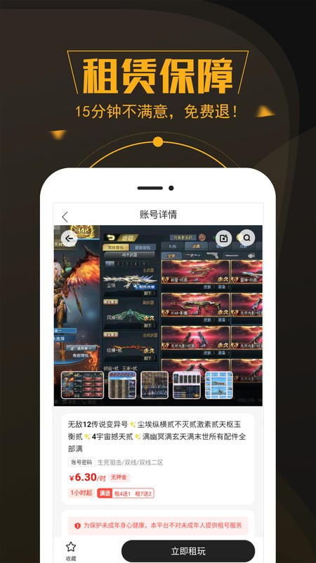 每天上架精品大神高玩账号供玩家任意租号。有租2小时送1小时,到点不下线随便玩的超值优惠活动。还有客服小姐姐全天在线,一对一解决各种问题。