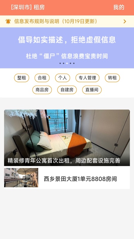 时效信息展示:平台房源信息经过人工审核,确保完整准确,且只在限定期限内展示,过期自动下架,避免“僵尸信息”霸屏。
