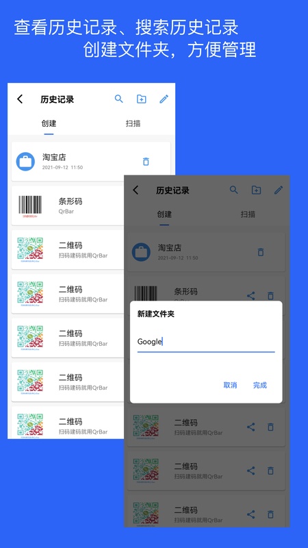 历史记录全部本地存储,无需联网,也可以创建文件夹,对历史记录进行分类存储,方便管理,还可以对所有历史记录进行搜索。