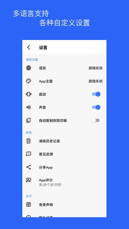 此外,它无需联网,能离线存储历史记录,可创建文件夹对历史记录分类存储,方便管理,还支持对历史记录搜索。同时适配了深色模式,支持英语、简体中文、繁体中文、日语等多种语言。