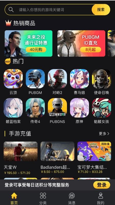提供NIKKE:胜利女神、DNF手游、代号鸢、PUBG Mobile、暗区突围等国际服游戏折扣购物。注册即领价值49元平台游戏礼包。拥有200万用户,提供300款热门游戏全品类高品质尖端资源,累计完成游戏充值服务13.2亿次。全网唯一超时必赔付,有多个档位赔付,超时越久赔付越多。正规氪金,无封号风险,全网唯一72小时售后保障。专业客服24小时在线,信息秒回。
