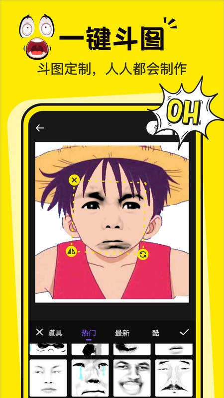 这款表情包制图APP功能丰富。具备趣味贴图功能,有海量表情包素材,涵盖各类热门表情、聊天表情包、搞笑表情、怼人专用表情、表情贴纸、表情文字等,能进行疯狂抠脸和灵魂P图,可自定义斗图表情;有海量表情包素材,能一键保存分享各类热门、聊天、搞笑、怼人专用表情;搞怪图片可用来整蛊好友,还能进行编辑;支持斗图定制,拥有海量素材帮助用户DIY自制表情包;支持一键保存,能快速转发表情包、趣图、DIY表情,一键分享收藏后可轻松分享给好友。