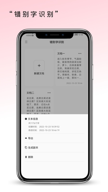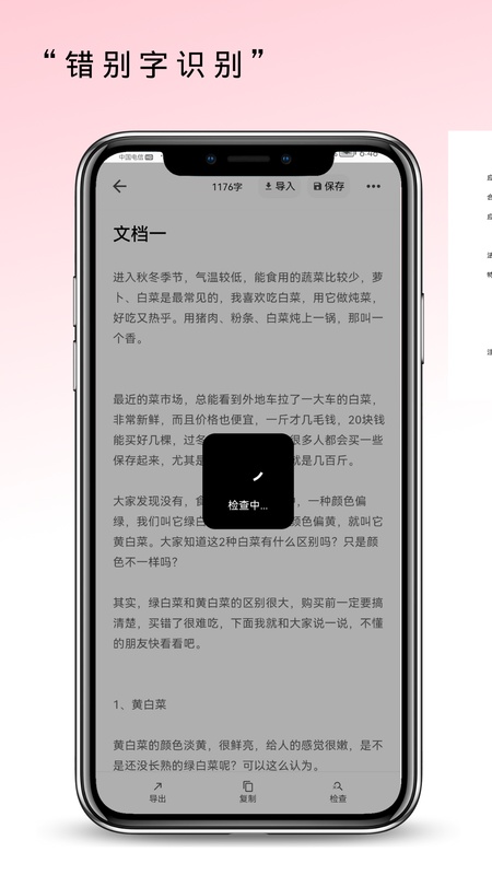 “错别字检查”app 具备智能识别文本错误的强大功能。它利用人工智能算法,能够快速、准确且高效地识别文本中存在的各类错误,涵盖错别字、重复字、漏字以及病句等问题。并且,该 app 还会针对识别出的错误给出相应的修改意见。