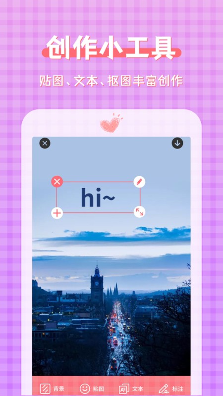 无论您是想记录生活中的温馨点滴,还是分享精彩的旅行攻略,它都能满足您的需求。软件拥有简洁拼图、图片裁剪等实用功能,还支持在图片中添加文字、制作文字图片以及上下加文字。