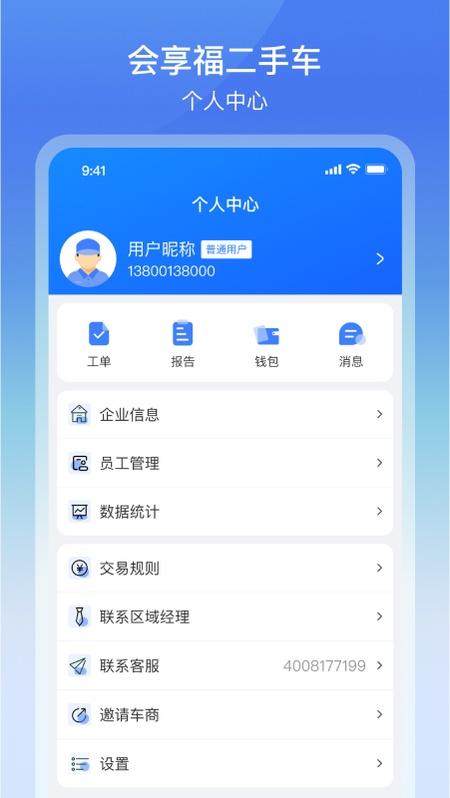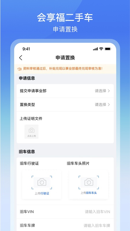 会享福二手车商户App为车主提供了全面且便捷的服务。通过该App,车主可以享受到线上线下无缝对接的服务体验。能够在线上查询福田集团旗下各大品牌的二手车信息,包括车辆的详细参数、车况报告等。同时,还能预约线下看车、试驾等服务,让购车过程更加高效。此外,App还提供车辆评估功能,帮助车主了解自己车辆的价值。